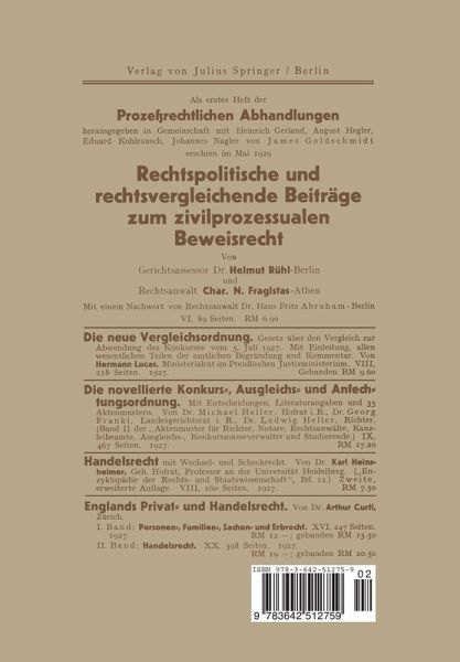 Allgemeines über die Einwirkung des Vergleichsverfahrens auf schwebende Verträge.- Begriff und Arten des Vertrages.- Der gegenseitige Vertrag.- Der einseitig verpflichtende Vertrag.- Einwirkung des Vergleichsverfahrens auf typische Verträge.- Die in der VO. geregelten typischen Verträge.- In der VO. nicht besonders geregelte Vertragstypen.