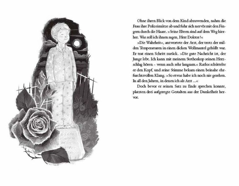Ein bezauberndes Cover mit einem tollen Einband sowie Farbschnitt abgesetzt, hat mich sogleich eingeladen, tiefer einzutauchen in eine wundervolle Schneelandschaft. Das Rentier mit dem kleinen Mädchen wirkt geheimnisvoll, und verspricht durch das umliegende Eis, mit den Türmen und dem Eiskind im