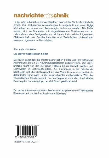 Enormes Anwachsen des Wissensstoffes begleitet von einer bisher nicht gekannten Innova tionsdynamik kennzeichnet die technische Entwicklung der letzten zwanzig Jahre in der vielschichtigen Elektrotechnik. Eine Neuauflage der seit 1969 vergriffenen 3. Auflage der ,;Obersicht tiber die Theoretische Elektrotechnik" des Verfassers, von der bereits Teil II gemeinsam mit Prof. Dr. H. Kleinwachter verfa~t wurde, mOOte daher zu einer Buchreihe mit mehreren Verfassem erweitert werden, urn allen Leserwtinschen einigerm~en ent gegenzukommen. So bef~t sich das vorliegende Buch nur mit der Lehre von den elektro rnagnetischen Feldem, dem eigentlichen Kemgebiet der Theoretischen Elektrotechnik. Es bildet das Fundament fUr viele Zweige der Nachrichtentechnik und der ihr angeglie derten Fachgebiete und erschien daher besonders geeignet zu sein, urn die NTE-Schriften reihe zu erOffnen. Behandelt werden die elektromagnetischen Felder und ihre technische Anwendung, die an 77 Anwendungsbeispielen erlautert wird. Der Stoffumfang reicht von den statischen Feldem bis zu den Mikrowellen und Lichtwellen in Lichtwellenleitem. Den Abschlu~ bildet ein kurzer Blick in die vierdimensionale Raum-Zeit~Welt; er solI eine Vertiefung des Verstandnisses fUr die physikalischen Zusammenhange vermitteln. Als Einftihrung in die Feldtheorie beschrankt sich die Stoffauswahl auf das Wesentliche und vermeidet ein detailliertes Eindringen in die anspruchsvolle mathematische Welt der Theoretischen Elektrotechnik. 1m Vordergrund steht die physikalische Deutung der Naturvorgange, der viel Raum gewidmet wird.