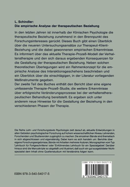 Die therapeutische Beziehung ist in den letzten Jahren zunehmend in den Brennpunkt des Forschungsinteresses der Klinischen Psychologie gerückt. Der Autor gibt einen Überblick über neuere Untersuchungsansätze zur Therapeut-Klient-Beziehung sowie über Meßinstrumente, die in der Literatur zur Analyse des Interaktionsgeschehens beschrieben werden, und referiert die dabei gewonnenen empirischen Erkenntnisse. Er informiert über das aktuelle Therapie-Prozeß-Modell der Verhaltenstherapie und die sich daraus ergebenden Konsequenzen für die Gestaltung der therapeutischen Beziehung. Im zweiten Teil des Buches schildert der Autor seine eigene umfassende Therapie-Prozeß-Studie, die weitere Erkenntnisse über erfolgreiche Veränderungsprozesse bei der verhaltenstherapeutischen Behandlung bereitstellt. Für die Gestaltung der therapeutischen Beziehung in den verschiedenen Phasen der Therapie ergeben sich neue Aspekte.
