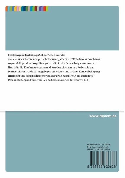 Die Diplomarbeit wird eingeleitet mit einer Definition von Image und der damit verbundenen Problematik. Es folgt die historische Entwicklung des Image-Konstrukts. Anschließend werden die psychologischen Grundlagen der Image-Forschung diskutiert sowie das Image-Konzept im Rahmen marktpsychologischer (und speziell mit Blick auf Wohnbauunternehmen zugeschnitten: umweltpsychologische) Überlegungen vorgestellt. Es schließen sich methodische Betrachtungen an zur Messung von Images und auch eine Kritik am Image-Begriff.