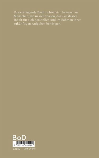 Das vorliegende Buch richtet sich bewusst an Menschen, die in sich wissen, dass sie dessen Inhalt für sich persönlich und im Rahmen ihrer zukünftigen Aufgaben benötigen.