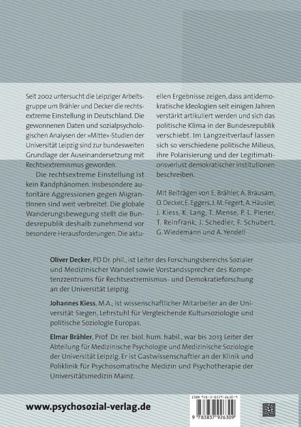 Mit Beiträgen von Elmar Brähler, Anna Brausam, Oliver Decker, Eva Eggers, Jörg M. Fegert, Alexander Häusler, Johannes Kiess, Kati Lang, Thorsten Mense, Paul L. Plener, Timo Reinfrank, Jan Schedler, Frank Schubert, Gregor Wiedemann und Alexander Yendell