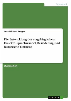 Studienarbeit aus dem Jahr 2024 im Fachbereich Germanistik - Linguistik, Note: 1,3, Friedrich-Schiller-Universität Jena (Institut für Kunst- und Kulturwissenschaft), Veranstaltung: Region und Sprache: Einführung in die Dialektforschung, Sprache: Deutsch, Abstract: Diese Hausarbeit untersucht die erzgebirgischen Dialekte und deren historische Entwicklung unter dem Einfluss der Besiedelung des Erzgebirges. Der Sprachraum erstreckt sich von der Linie Zwickau bis zur Landesgrenze zur Tschechischen Republik und zeigt eine komplexe Dialektlandschaft, die in west- und osterzgebirgische Mundarten zerfällt. Ein besonderer Fokus liegt auf den Sprachströmungen, die die Dialekte bis heute beeinflussen. Die Arbeit beleuchtet auch die Besiedelungsgeschichte und deren Auswirkungen auf den Sprachwandel. Zur Erfassung des vollständigen Dialektraums werden insbesondere Quellen vor 1945 herangezogen, die auch den böhmischen Teil des Erzgebirgischen berücksichtigen.