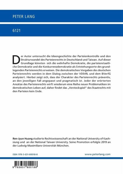 Der Autor untersucht die Ideengeschichte der Parteienkontrolle und den Strukturwandel des Parteienrechts in Deutschland und Taiwan. Auf dieser Grundlage könnten sich die wehrhafte Demokratie, die parteienstaatliche Demokratie und die Konkurrenzdemokratie als Entstehungsorte des grundlegenden Parteienrechts erweisen. Die demokratischen Vorgaben des deutschen Parteienrechts werden in dem Dialog zwischen der VDStRL und dem BVerfG analysiert. Hierbei zeigt sich, dass der Charakter des Parteienrechts präventiv, an den jeweiligen Fall angepasst und pragmatisch ist. Jeder der erörterten Ansätze des Parteienrechts wirft wiederum eine Reihe neuer Problematiken im demokratischen Leben auf, daher findet das "Versteckspiel" des Staatrechts mit den Parteien kein Ende.