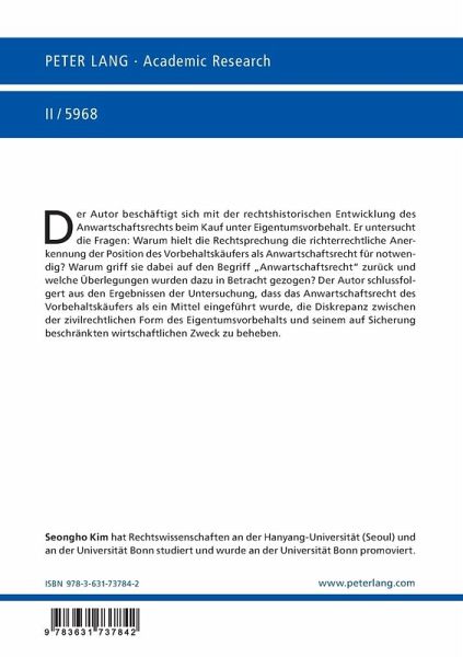 Der Autor beschäftigt sich mit der rechtshistorischen Entwicklung des Anwartschaftsrechts beim Kauf unter Eigentumsvorbehalt. Er untersucht die Fragen: Warum hielt die Rechtsprechung die richterrechtliche Anerkennung der Position des Vorbehaltskäufers als Anwartschaftsrecht für notwendig? Warum griff sie dabei auf den Begriff «Anwartschaftsrecht» zurück und welche Überlegungen wurden dazu in Betracht gezogen? Der Autor schlussfolgert aus den Ergebnissen der Untersuchung, dass das Anwartschaftsrecht des Vorbehaltskäufers als ein Mittel eingeführt wurde, die Diskrepanz zwischen der zivilrechtlichen Form des Eigentumsvorbehalts und seinem auf Sicherung beschränkten wirtschaftlichen Zweck zu beheben.
