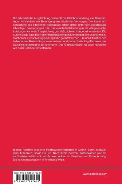 Die erbrechtliche Ausgleichung bezweckt die Gleichbehandlung von Abkömmlingen hinsichtlich der Beteiligung am elterlichen Vermögen. Die Auseinandersetzung des elterlichen Nachlasses erfolgt daher unter Berücksichtigung lebzeitiger Zuwendungen. Für Kindesunterhaltsleistungen als obligatorische Leistungen kann die Ausgleichung grundsätzlich nicht angeordnet werden. Die Autorin zeigt, dass beim behinderungsbedingten Mehrbedarf eine Ausnahme zu machen ist. Dessen Ausgleichung kann genutzt werden, um den Pflichtteil des behinderten Abkömmlings zu reduzieren und dadurch die Zugriffsmasse des Sozialleistungsträgers zu verringern. Das Gestaltungsziel ist dabei dasselbe wie beim Behindertentestament.