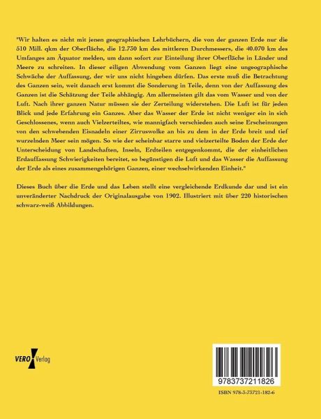 Dieses Buch über die Erde und das Leben stellt eine vergleichende Erdkunde dar und ist ein unveränderter Nachdruck der Originalausgabe von 1902. Illustriert mit über 220 historischen schwarz-weiß Abbildungen.
