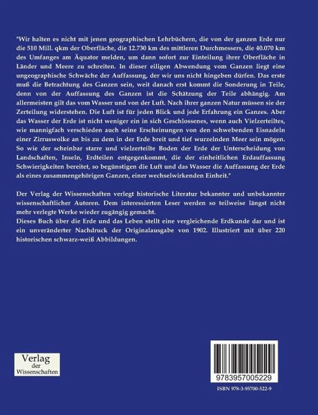 Dieses Buch über die Erde und das Leben stellt eine vergleichende Erdkunde dar und ist ein unveränderter Nachdruck der Originalausgabe von 1902. Illustriert mit über 220 historischen schwarz-weiß Abbildungen.
