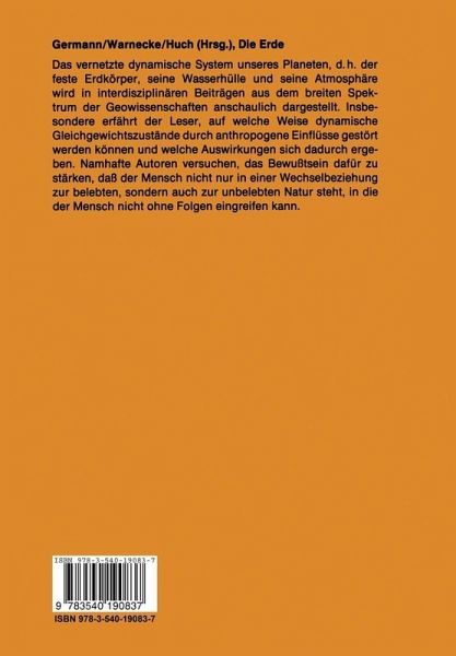 Das vernetzte dynamische System unseres Planeten, d. h. der feste Erdkörper, seine Wasserhülle und seine Atmosphäre wird in interdisziplinären Beiträgen aus dem breiten Spektrum der Geowissenschaften anschaulich dargestellt. Insbesondere erfährt der Leser, auf welche Weise dynamische Gleichgewichtszustände durch anthropogene Einflüsse gestört werden können und welche Auswirkungen sich dadurch ergeben. Namhafte Autoren versuchen, das Bewußtsein dafür zu stärken, daß der Mensch nicht nur in einer Wechselbeziehung zur belebten sondern auch zur unbelebten Natur steht, in die der Mensch nicht ohne Folgen eingreifen kann.