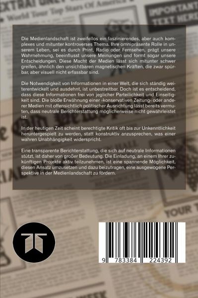 Die Medienlandschaft ist zweifellos ein faszinierendes, aber auch komplexes und mitunter kontroverses Thema. Ihre omnipräsente Rolle in unserem Leben, sei es durch Print, Radio oder Fernsehen, prägt unsere Wahrnehmung, beeinflusst unsere Meinungen und formt sogar unsere Entscheidungen. Diese Macht der Medien lässt sich mitunter schwer greifen, ähnlich den unsichtbaren magnetischen Kräften, die zwar spürbar, aber visuell nicht erfassbar sind.Die Notwendigkeit von Informationen in einer Welt, die sich ständig weiterentwickelt und ausdehnt, ist unbestreitbar. Doch ist es entscheidend, dass diese Informationen frei von jeglicher Parteilichkeit und Einseitigkeit sind. Die bloße Erwähnung einer 'konservativen Zeitung' oder anderer Medien mit offensichtlich politischer Ausrichtung lässt bereits vermuten, dass neutrale Berichterstattung möglicherweise nicht gewährleistet ist.In der heutigen Zeit scheint berechtigte Kritik oft bis zur Unkenntlichkeit heruntergespielt zu werden, statt konstruktiv anzusprechen, was einer wahren Unabhängigkeit widerspricht.Eine transparente Berichterstattung, die sich auf neutrale Informationen stützt, ist daher von großer Bedeutung. Die Einladung, an einem Ihrer zukünftigen Projekte aktiv teilzunehmen, ist eine spannende Möglichkeit, diesen Ansatz umzusetzen und dazu beizutragen, eine ausgewogene Perspektive in der Medienlandschaft zu fördern.