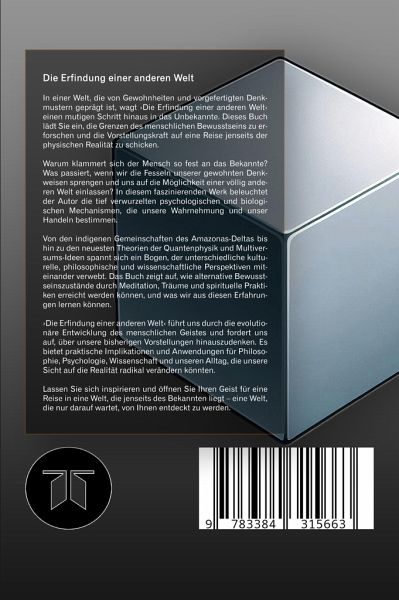 In einer Welt, die von Gewohnheiten und vorgefertigten Denkmustern geprägt ist, wagt 'Die Erfindung einer anderen Welt' einen mutigen Schritt hinaus in das Unbekannte. Dieses Buch lädt Sie ein, die Grenzen des menschlichen Bewusstseins zu erforschen und die Vorstellungskraft auf eine Reise jenseits der physischen Realität zu schicken.Warum klammert sich der Mensch so fest an das Bekannte? Was passiert, wenn wir die Fesseln unserer gewohnten Denkweisen sprengen und uns auf die Möglichkeit einer völlig anderen Welt einlassen? In diesem faszinierenden Werk beleuchtet der Autor die tief verwurzelten psychologischen und biologischen Mechanismen, die unsere Wahrnehmung und unser Handeln bestimmen.Von den indigenen Gemeinschaften des Amazonas-Deltas bis hin zu den neuesten Theorien der Quantenphysik und Multiversums-Ideen spannt sich ein Bogen, der unterschiedliche kulturelle, philosophische und wissenschaftliche Perspektiven miteinander verwebt. Das Buch zeigt auf, wie alternative Bewusstseinszustände durch Meditation, Träume und spirituelle Praktiken erreicht werden können, und was wir aus diesen Erfahrungen lernen können.'Die Erfindung einer anderen Welt' führt uns durch die evolutionäre Entwicklung des menschlichen Geistes und fordert uns auf, über unsere bisherigen Vorstellungen hinauszudenken. Es bietet praktische Implikationen und Anwendungen für Philosophie, Psychologie, Wissenschaft und unseren Alltag, die unsere Sicht auf die Realität radikal verändern könnten.Lassen Sie sich inspirieren und öffnen Sie Ihren Geist für eine Reise in eine Welt, die jenseits des Bekannten liegt - eine Welt, die nur darauf wartet, von Ihnen entdeckt zu werden.