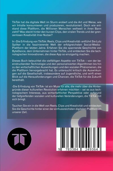 TikTok hat die digitale Welt im Sturm erobert und die Art und Weise, wie wir Inhalte konsumieren und produzieren, revolutioniert. Doch wie entstand diese Plattform, die Millionen Menschen weltweit in ihren Bann zieht? Was steckt hinter den kurzen Clips, den viralen Trends und der grenzenlosen Kreativität ihrer Nutzer?In 'Die Erfindung von TikTok: Reels, Clips und Kreativität' entführt Sie Lutz Spilker in die faszinierende Welt der erfolgreichsten Social-Media-Plattform der letzten Jahre. Erfahren Sie die spannende Geschichte von ByteDance, dem Unternehmen hinter TikTok, und entdecken Sie die technologischen Innovationen, die diese App so einzigartig machen.Dieses Buch beleuchtet die vielfältigen Aspekte von TikTok - von der beeindruckenden Technologie und den personalisierten Algorithmen bis hin zu den wirtschaftlichen Auswirkungen und den sozialen Phänomenen, die die Plattform hervorgebracht hat. Es untersucht kritisch die Auswirkungen auf die Gesellschaft, insbesondere auf Jugendliche, und wirft einen Blick auf die Herausforderungen und Chancen, die TikTok für die Zukunft bereithält.'Die Erfindung von TikTok' ist ein Muss für alle, die mehr über die Hintergründe dieser kulturellen Revolution erfahren möchten - sei es aus technologischem Interesse, aus wirtschaftlicher Perspektive oder aufgrund der tiefgreifenden sozialen und kulturellen Veränderungen, die TikTok mit sich bringt.Tauchen Sie ein in die Welt von Reels, Clips und Kreativität und entdecken Sie die Geschichte hinter einer der einflussreichsten digitalen Plattformen unserer Zeit.