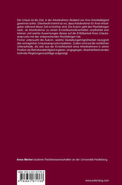 Der Urlaub ist die Zeit, in der Arbeitnehmer Abstand von ihrer Arbeitstätigkeit gewinnen sollen. Gleichwohl kommt es vor, dass Arbeitnehmer für ihren Arbeitgeber während dieser Zeit erreichbar sind. Die Autorin geht den Rechtsfragen nach, ob Arbeitnehmer zu einem Erreichbarkeitsverhalten verpflichtet sein können und welche Auswirkungen dieses auf die Erfüllbarkeit ihres Urlaubsanspruchs mit den entsprechenden Rechtsfolgen hat. Ferner untersucht die Autorin, welche Gestaltungsmöglichkeiten bezüglich des vertraglichen Urlaubsanspruchs bestehen. Zudem wird auf die rechtlichen Unterschiede, die sich aus der Erreichbarkeit eines Arbeitnehmers in seiner Position als Betriebsratsmitglied ergeben, eingegangen. Abschließend werden konkrete Regelungsvorschläge aufgezeigt