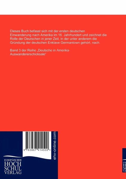 Dieses Buch befasst sich mit der ersten deutschen Einwanderung nach Amerika im 16. Jahrhundert und zeichnet die Rolle der Deutschen in jener Zeit, in der unter anderem die Gründung der deutschen Enklave Germantown gehört, nach.