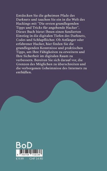 Entdecken Sie die geheimen Pfade des Darknets und tauchen Sie ein in die Welt des Hackings mit "Die ersten grundlegenden Tipps und Tricks für angehende Hacker". Dieses Buch bietet Ihnen einen fundierten Einstieg in die digitalen Tiefen des Darknets, Codes und Schlupflöcher. Ob Anfänger oder erfahrener Hacker, hier finden Sie die grundlegenden Kenntnisse und praktischen Tipps, um Ihre Fähigkeiten zu erweitern und Ihre Sicherheit im digitalen Raum zu verbessern. Bereiten Sie sich darauf vor, die Grenzen des Möglichen zu überschreiten und die verborgenen Geheimnisse des Internets zu enthüllen.