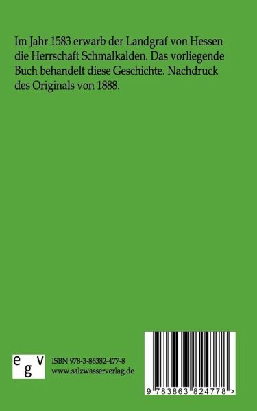 Im Jahr 1583 erwarb der Landgraf von Hessen die Herrschaft Schmalkalden. Das vorliegende Buch behandelt diese Geschichte. Nachdruck des Originals von 1888.