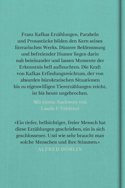 Franz Kafkas Erzählungen, Parabeln und Prosastücke, die teilweise zu Lebzeiten erschienen, doch großteils erst von Max Brod aus dem Nachlass herausgegeben wurden, bilden den Kern seines unsterblichen literarischen Werks. Der Erfindungsreichtum, der von absurden bürokratischen Situationen bis zu eigentümlich heiteren Tiererzählungen reicht, ist einzigartig und unerreicht. Düstere Beklemmung und manchmal befreiender Humor liegen in seinen berühmten Erzählungen wie »Die Verwandlung«, »Das Urteil«, »In der Strafkolonie« oder »Der Hungerkünstler« nah beieinander. »Kafka blickt auf die Welt als ein in sie Zurückgestoßener«, schrieb Siegfried Kracauer, und die eindringliche Kraft dieser Kafka'schen, kafkaesken Welt ist bis heute ungebrochen.