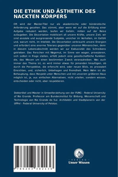 Oft wird der Master-Titel nur als akademische oder bürokratische Anforderung gesehen. Das stimmt, aber wenn wir auf die Erfüllung einer Aufgabe reduziert werden, laufen wir Gefahr, mitten auf der Reise aufzugeben. Die Dissertation mobilisiert all unsere Kräfte, unsere Zeit; wir sind asoziale und ausgrenzende Subjekte, unsicher im Verhalten, im Gefühl und, warum nicht, im Intellekt. Die Dissertation verbraucht unsere Energien und erfordert eine enorme Toleranz gegenüber unseren Mitmenschen, denn in diesem Lebensabschnitt werden wir zur Exklusivität des Schreibens getrieben. Das Forschen mit Wagemut, im Sinne von wagen, provozieren, sich selbst in Frage stellen, erfüllt jedoch eine gesellschaftliche Funktion: die, das Wissen um einen bestimmten Zweck voranzutreiben. Was auch immer das Thema ist, es wird immer etwas für jemanden hinzufügen, ob durch die Perspektive, die erforscht wird, oder neuen Blick, es provoziert Einsichten, und, sicherlich, Unbehagen und Fremdheit. Mein Wahn ist die Behauptung, dass Respekt unter Menschen und mit unserem größeren Haus möglich ist, ja, aus einfachen Alternativen, nicht urteilen, sondern wissen, entscheiden oder nicht, aber respektieren.