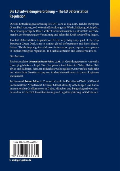 The EU Deforestation Regulation (EUDR) of 31 May 2023, part of the 2019 European Green Deal, aims to combat global deforestation and forest degradation. This bilingual guide addresses information gaps, supports companies in implementing the regulation, and tackles criticism and unresolved issues.