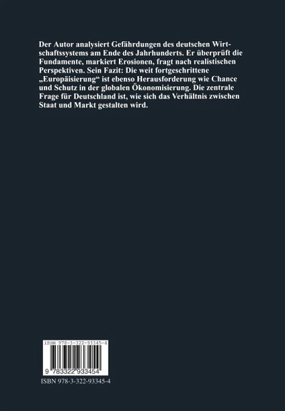 Einleitung: Über die Bedeutung historischer Faktoren für aktuelle Prozeßanalysen und Zukunftsbewertungen.- 1. Kapitel: Historische Konvergenzen und Divergenzen nationalstaatlicher Wirtschaftssysteme in der Europäischen Union.- 1. Konvergenz als grundlegende Funktionsbedingung einer Union.- 2. Untersuchungskriterien.- 3. Nationalgeschichtliche Unterschiede im Staatsverständnis angelsächsischer und kontinentaleuropäischer Staaten.- 4. Signifikante Merkmale der Wirtschaftsentwicklung in England und Frankreich im Blick auf Deutschland.- 5. Signifikante Merkmale der deutschen Wirtschaftsentwicklung bis zum Beginn des 20. Jahrhunderts.- 2. Kapitel: Die Fundamente des Wirtschaftssystems der Bundesrepublik Deutschland.- 1. Kriterien der Untersuchung.- 2. Die Soziale Marktwirtschaft - vom nationalstaatlichen ORDO-Liberalismus zum globalen Neoliberalismus.- 3. Das DM-System als Grundlage von Stabilität und Demokratie.- 4. Die Tarif-Autonomie als Fundament der Arbeitsbeziehungen in Deutschland.- 5. Sozialstaat und Arbeitsgesellschaft als Fundamente des deutschen Wirtschaftssystems.- 3. Kapitel: Veränderte Rahmenbedingungen am Jahrhundertende.- 1. Das vereinigte Deutschland und die strukturellen Folgen der wirtschaftlichen Transformation.- 2. Der vollendete europäische Binnenmarkt und das Regiment der EU-Kommission.- 3. Die Europäische Zentralbank - neue institutionelle Bedingungen unabhängiger Notenbankpolitik.- 4. Die neue Verfassung der Deutschen Bundesbank.- 5. Die eingeschränkte nationalstaatliche Souveränität über die Wirtschafts- und Währungspolitik.- 6. Fortfall weltpolitischer Bipolarität und der "Pax Americana" - der Durchbruch globalisierter Märkte und Unternehmen.- 4. Kapitel: Erosion vertrauter Strukturen und Gewißheiten.- 1. Das Vertrauenauf das Konzept der "Sozialen Marktwirtschaft".- 2. Nationale Wettbewerbsordnung und globale Konzentrationsprozesse.- 3. Veränderte Sozial- und Arbeitsstrukturen - Arbeitslosigkeit als Strukturproblem.- 4. Die Erosion der Tarifautonomie.- 5. Ungesicherte sozialstaatliche Sicherheiten.- 5. Kapitel: Die Zukunft der deutschen Wirtschaft im europäisierten System.- 1. Die Marktwirtschaft.- 2. Zukunft der Arbeitsverhältnisse und kooperative Tarifpolitik.- 3. Politik und Staat in der Marktwirtschaft.- 6. Kapitel: Zur Leistungsfähigkeit europäischer Institutionen und zu den deutschen Interessen.- 1. "Politische Leistungsfähigkeit" von Demokratien.- 2. Die politische Leistungsfähigkeit der europäischen Institutionen.- 3. Deutsche Interessen und Verantwortlichkeiten.- Ein Resümee: Der Markt, der Staat und der kooperative Ausgleich privater und öffentlicher Interessen.- Literatur.- Verzeichnis der Tabellen.- Verzeichnis der Schaubilder.- Ausführliches Inhaltsverzeichnis.- Namenregister.