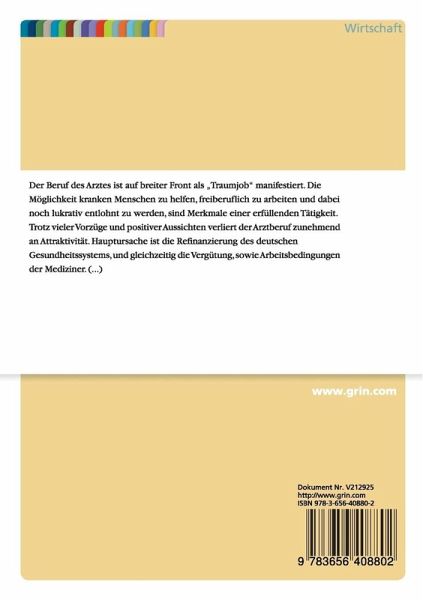 Bachelorarbeit aus dem Jahr 2013 im Fachbereich BWL - Investition und Finanzierung, Note: 1,7, FOM Hochschule für Oekonomie & Management Essen, Standort Duisburg, Sprache: Deutsch, Abstract: Der Beruf des Arztes ist auf breiter Front als "Traumjob" manifestiert. Die Möglichkeitkranken Menschen zu helfen, freiberuflich zu arbeiten und dabei noch lukrativ entlohntzu werden, sind Merkmale einer erfüllenden Tätigkeit. Trotz vieler Vorzüge und positiverAussichten verliert der Arztberuf zunehmend an Attraktivität. Hauptursache ist dieRefinanzierung des deutschen Gesundheitssystems, und gleichzeitig die Vergütung,sowie Arbeitsbedingungen der Mediziner. In den letzten zwanzig Jahren haben Reformenund Reglementierungen der Politik massive strukturelle Veränderungen amGesundheitsmarkt ausgelöst und eine Verunsicherung innerhalb der Ärzteschaft hervorgerufen.Das Resultat ist ein akuter Mangel an ärztlichem Nachwuchs. In Folge dessenhaben viele niedergelassene Mediziner Probleme, einen Praxisnachfolger zu finden. DieGefahr einer medizinischen Unterversorgung rückt die Niederlassung von Ärzten in denFokus, da wirtschaftlich selbstständige Mediziner den Kern der ambulanten Versorgungin Deutschland abbilden.Die "Eigene Praxis" stellt für viele Ärzte sowohl das erklärte beruflich Ziel, Fundamentwirtschaftlichen Erfolgs, als auch die Existenzgrundlage dar. Jedoch haben sich speziellin diesem Bereich die ökonomischen und rechtlichen Anforderungen grundlegend geändert.Negativfaktoren wie lange Arbeitstage, die Einnahmenunsicherheit, und dasInvestitionsrisiko schrecken den Nachwuchs ab. Dabei bestehen auch unter Einfluss deraktuellen Gesundheitspolitik aussichtsreiche Optionen, ein gesichertes und weit überdurchschnittlichesEinkommen zu erzielen. Perspektivisch werden sich die niedergelassenenÄrzte behaupten, die zum einen über die notwendige fachliche Qualifikation undzum anderen über betriebswirtschaftliches Wissen, als auch unternehmerische Fähigkeitenverfügen. Arztpraxenentwickeln sich zu klein- und mittelständischen Unternehmen(KMU). Das Medizinstudium ist jedoch nicht darauf ausgerichtet, den angehendenArzt zu einem Unternehmer auszubilden, so dass i.d.R. nur unzureichende betriebswirtschaftlicheKenntnisse vor der Niederlassung bestehen. Besondere Bedeutung erhält indiesem Zusammenhang die Existenzgründungsplanung und -beratung, welche die Basisfür eine erfolgreiche Selbstständigkeit bildet. Für die Existenzgründer stellt die aktuelleSituation eine besondere Herausforderung, aber auch Chance für die zukünftige Positionierungdar. [...]