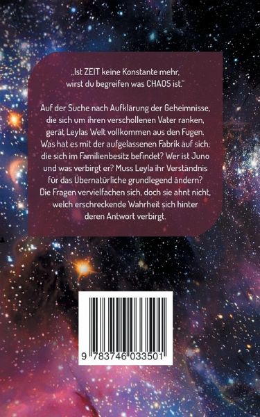 "Ist Zeit keine Konstante mehr, wirst du begreifen was Chaos ist."Auf der Suche nach Aufklärung der Geheimnisse, die sich um ihren verschollenen Vater ranken, gerät Leylas Welt vollkommen aus den Fugen. Was hat es mit der aufgelassenen Fabrik auf sich, die sich im Familienbesitz befindet? Wer ist Juno und was verbirgt er? Muss Leyla ihr Verständnis für das Übernatürliche grundlegend ändern? Die Fragen vervielfachen sich, doch sie ahnt nicht, welch erschreckende Wahrheit sich hinter deren Antwort verbirgt.