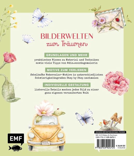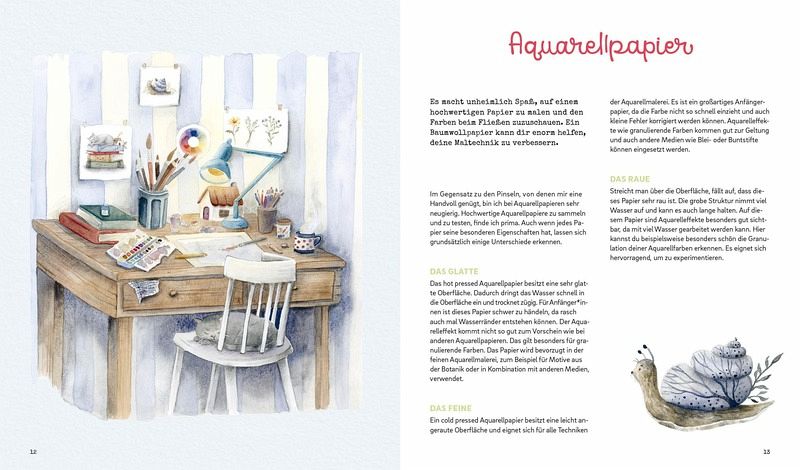 Süße Watercolor-Motive in unterschiedlichen SchwierigkeitsgradenStep-by-Step-Anleitungen führen selbst Anfänger_innen zum ErfolgPraktischer Grundlagenteil zum Malen mit Watercolor