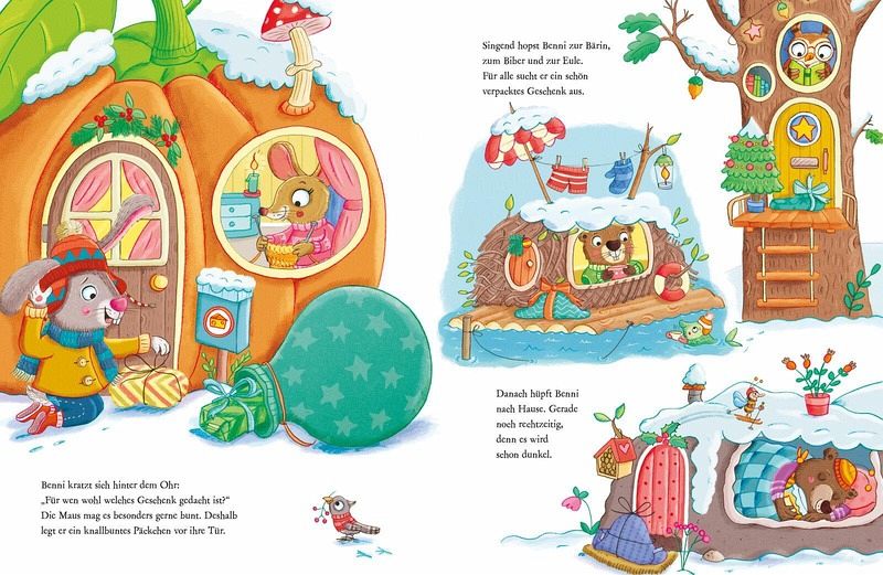 Ein niedliches Bilderbuch für Jungen und Mädchen ab 3 Jahren über das Schenken und Beschenktwerden an Weihnachten.