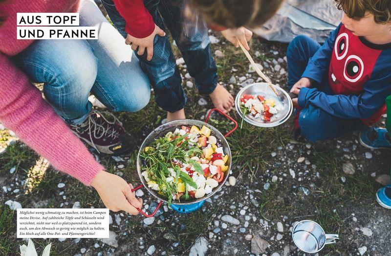 Köstliche One-Pots, kunterbunte Salate oder süßes Seelenfutter. Die Rezepte sind outdoorerprobt und variantenreich. Mit wenig Aufwand für Gaskocher, Grill oder Kochplatte. Foodbloggerin Sonja Stötzel verrät außerdem clevere Tipps rund um Planung & Ausrüstung. Gute Laune und ein entspannter Urlaub sind garantiert.