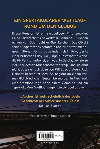 Bryce Fenston ist ein skrupelloser Finanzmakler. Seine Leidenschaft sind wertvolle Gemälde - für einen echten van Gogh geht er über Leichen. Das Objekt seiner Begierde: das berühmte »Selbstporträt mit abgeschnittenem Ohr«. Es befindet sich im Privatbesitz einer britischen Lady. Die junge Kunstexpertin Anna, die für Fenston arbeitet, schwebt in Gefahr, weil sie zu viel über dessen Machenschaften weiß. Und sie ahnt nicht, dass sie noch dazu von FBI Special Agent Jack Delaney sie beschattet wird. So beginnt an einem vermeintlich friedlichen Septembermorgen in New York eine atemlose Jagd nach einem Gemälde und ein spektakulärer Wettlauf gegen die Skrupellosigkeit.