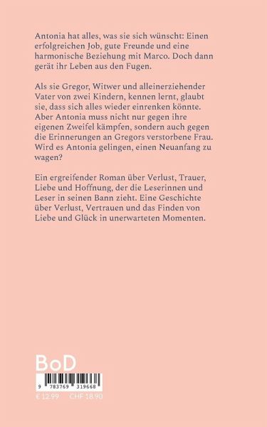 Antonia hat alles, was sie sich wünscht: Einen erfolgreichen Job, gute Freunde und eine harmonische Beziehung mit Marco. Doch dann gerät ihr Leben aus den Fugen. Als sie Gregor, Witwer und alleinerziehender Vater von zwei Kindern, kennen lernt, glaubt sie, dass sich alles wieder einrenken könnte. Aber Antonia muss nicht nur gegen ihre eigenen Zweifel kämpfen, sondern auch gegen die Erinnerungen an Gregors verstorbene Frau. Wird es Antonia gelingen, einen Neuanfang zu wagen? "Neuanfang in deinen Armen" ist ein ergreifender Roman über Verlust, Trauer, Liebe und Hoffnung, der die Leserinnen und Leser in seinen Bann zieht. Eine Geschichte über Verlust, Vertrauen und das Finden von Liebe und Glück in unerwarteten Momenten.