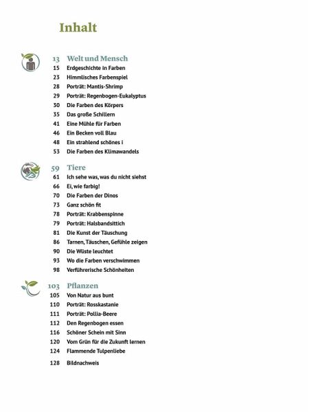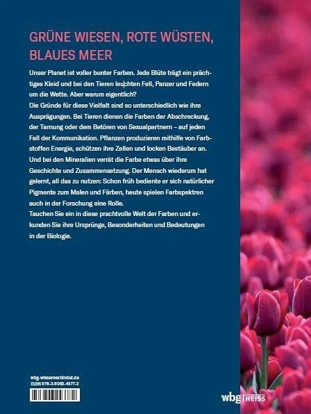 Bei Tieren und Pflanzen dienen die Farben der Abschreckung oder der Tarnung, dem Betören von Sexualpartnern oder gar dem Ausdruck von Stimmungen. Die Schattierung von Mineralien verrät etwas über ihre Geschichte. Ob bei knallbunten Pfeilgiftfröschen oder schillernden Schmetterlingen - die Farben der Natur sind ein universelles Kommunikationsmittel. Und das, obwohl sich die Farbwahrnehmungen unterscheiden: So sehen etwa Insekten die Blüten ganz anders als wir. Mit diesem reich illustrierten Band tauchen Sie ein in diese unglaubliche Welt der Farben und erfahren Erstaunliches über ihre Ursprünge und Bedeutung in der Biologie.“