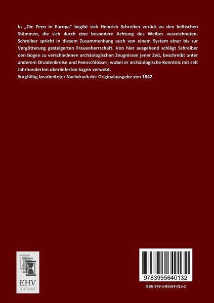 In Die Feen in Europa begibt sich Heinrich Schreiber zurück zu den keltischen Stämmen, die sich durch eine besondere Achtung des Weibes auszeichneten. Schreiber spricht in diesem Zusammenhang auch von einem System einer bis zur Vergötterung gesteigerten Frauenherrschaft. Von hier ausgehend schlägt Schreiber den Bogen zu verschiedenen archäologischen Zeugnissen jener Zeit, beschreibt unter anderem Druidenkreise und Feenschlösser, wobei er archäologische Kenntnis mit seit Jahrhunderten überlieferten Sagen verwebt.