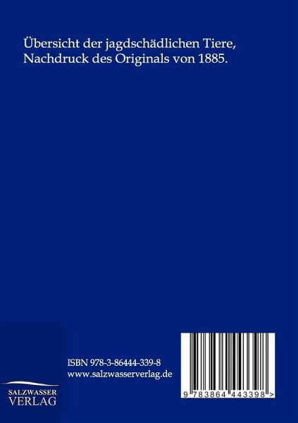 Übersicht der jagdschädlichen Tiere, Nachdruck des Originals von 1885.