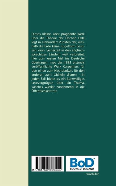 In diesem prägnantem Werk über die Theorie der Flachen Erde legt William Carpenter in einhundert Punkten dar, weshalb die Erde keine Kugelform besitzen kann. Seinerzeit in den englischsprachigen Ländern weit verbreitet, hier zum ersten Mal ins Deutsche übertragen, mag das 1885 erstmals veröffentlichte Werk Carpenters den einen zum Nachdenken, den anderen zum Lächeln bringen - in jedem Fall bietet es ein kurzweiliges Lesevergnügen über ein Thema, welches wieder zunehmend in die Öffentlichkeit tritt.