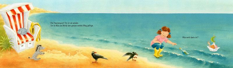 Die Flaschenpost - Eine spannende Reise zum Meer Ein Wendebuch mit zwei Geschichten in einem Buch: Die Geschichte von Tim, der eine Flaschenpost abschickt und die Geschichte von Mia, die diese Flaschenpost im Urlaub am Meer findet. Ein liebevoll und kindgerecht illustriertes Wende-Bilderbuch in warmen Farben - für alle, die Urlaub, Strand und Meer lieben. * Zwei Geschichten in einem Buch: "Die Flaschenpost" ist ein spannendes Abenteuer, das aus zwei Perspektiven erzählt wird. Durch das kreative Wendebuch-Format treffen sich beide Geschichten in der Buchmitte, wo auch das Geheimnis der Flaschenpost gelüftet wird. * Farbenfrohe und kindgerechte Illustrationen Jede Doppelseite ist vollflächig illustriert mit warmen Sommerfarben und in einem kindgerechten Zeichenstil. Die detaillierten Bilder laden zum Erkunden und Verweilen ein, und das gut gewählte Text-Bild-Verhältnis macht das Buch für die Altersstufe besonders ansprechend. * Interaktiver Lesespaß, der die Fantasie anregt "Die Flaschenpost" ist mehr als ein gewöhnliches Kinderbuch. Es regt zum Nachdenken und zur Interaktion an. Das Ende der Geschichte fördert die Kreativität und ermutigt Kinder, die Geschichte weiterzuerzählen.