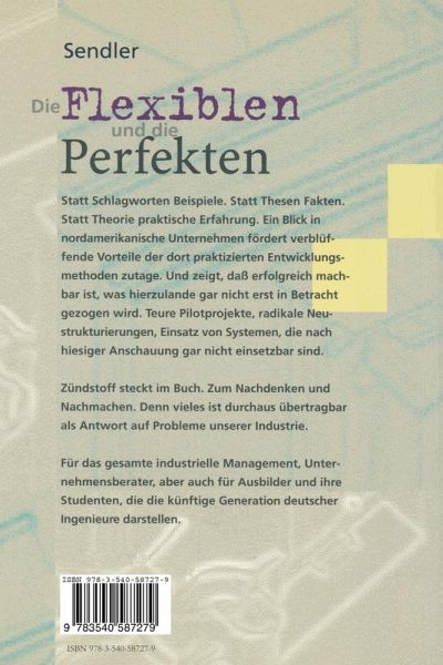 Statt Schlagworten Beispiele. Statt Thesen Fakten. Statt Theorie praktische Erfahrung. Ein Blick in nordamerikanische Unternehmen fördert verblüffende Vorteile der dort praktizierten Entwicklungsmethoden zutage. Und zeigt, daß erfolgreich machbar ist, was hierzulande gar nicht erst in Betracht gezogen wird. Teure Pilotprojekte, radikale Neustrukturierungen, Einsatz von Systemen, die nach hiesiger Anschauung gar nicht einsetzbar sind. Zündstoff steckt im Buch. Zum Nachdenken und Nachmachen. Denn vieles ist durchaus übertragbar als Antwort auf die Probleme unserer Industrie.