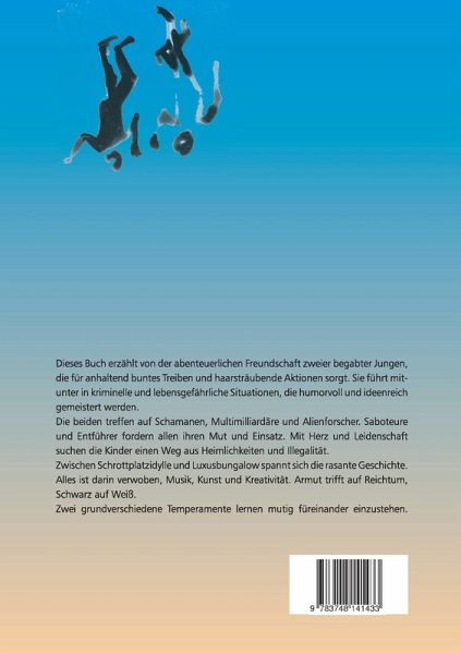 Zwei Jungen freunden sich an, sorgen für haarsträubende Aktionen, die sie humorvoll und ideenreich meistern. Mit Herz und Leidenschaft finden sie einen Weg aus Heimlichkeit und Illegalität.Sie treffen auf Schamanen, Multimilliardäre und Alienforscher. Entführer und Saboteure fordern all ihren Mut und Einsatz.Zwischen Schrottplatzidylle und Luxusbungalow entwickelt sich die spannende Geschichte. Alles ist darin verwoben, Musik, Kunst und Kreativität. Armut trifft auf Reichtum, Schwarz auf Weiß.Zwei grundverschiedene Temperamente lernen mutig füreinander einzustehen.