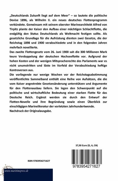 Die vorliegende nur wenige Wochen vor der Reichstagsabstimmung veröffentlichte Sammelband enthält eine Reihe von Aufsätzen, die die vom Kaiser angestrebte Gesetzesänderung unterstützen und Argumentefür den Flottenausbau liefern. Sie legen den Schwerpunkt auf die politische und wirtschaftliche Bedeutung einer starken Flotte für das Deutsche Reich. Ergänzt werden sie durch den Entwurf der Flotten-Novelle und ihre Begründung sowie einen Überblick zur einschlägigen Marineliteratur der vorletzten Jahrhundertwende.