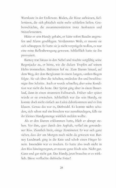 Hoch oben im Norden Schwedens regnet es schon fast den ganzen Herbst. Und dann zeigen sich im obersten Staudamm des Lule älv tatsächlich Risse. Keiner kann sich vorstellen, dass er brechen könnte. Doch dann geschieht genau das - die Katastrophe nimmt ihren Lauf. Das Wasser kommt in gigantischen Massen. Ein Tsunami im eigenen Land. Inmitten des Infernos eine Gruppe von Menschen, die unterschiedlicher nicht sein könnten und die nun aufeinander angewiesen sind, wollen sie überleben: Der Hubschrauberpilot, der kurz vor einem Selbstmord stand. Die Künstlerin, die mit ihrer Malgruppe in den Wäldern umherstreift. Die Schwangere, die an einen Schornstein geklammert um ihr Überleben kämpft und von einem anderen Schiffbrüchigen ins Boot gezerrt wird. Zwei Ingenieurinnen, die schon lange vor der Gefahr gewarnt haben. Sie alle stehen vor einer gewaltigen Herausforderung: Sie kämpfen nicht nur ums Überleben, sondern auch um ihre eigene Menschlichkeit ...