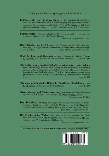 Die erste Auflage der vorHegenden Schrift war in zwei Bande ge teilt, von denen der erste im Jahre 1905 - der zweite 1911 erschienen ist. Die ungleichzeitige Entstehung und die ungleichmaBige Behandlung einzelner Teile Hellen eine neue Bearbeitung der ganzen Schrift wiin schenswert erscheinen. Es war meine Absicht, eine solche der Forst akademie Tharandt zu ihrer Hundertjahrfeier (Juni 1916) zu widmen. Der Krieg machte jedoch diesen, wie so manchen anderen literarischen Arbeitsplan, Zu nichte. Die Schrift wurde auch jetzt noch nicht das Licht der Welt erblicken, wenn nicht im September d. J. eine Broschure von H. Honlinger erschienen ware, die den Titel fiihrt: "Die Tha randter Forstakademie als Hemmschuh fur den Fortschritt (der end gultige Niederbruch der Bodenreinertragslehre)". Hiergegen glaubte ich, soweit dabei meine Person in Frage kommt, nichts Besseres tun zu konnen, als diese der Forstakademie Tharandt gewidmete Schrift zu veroffentlichen und die Beurteilung, ob die darin niedergelegten Arbeiten einen Hemmschuh des Fortschritts bedeuten, den sachkundigen Fach genossen zu uberlassen. "DaB man in jeder Art von Wirtschaft die Ertrage und Produk tionskosten gegeneinander abwagen mull, ist so selbstverstandlich, daB eine besondere Begriindung hierfur nicht erforderlich ist. Gleichwohl hat die forstliche Statik, welche diese Abwagung vornehmen solI, seither in der praktischen Betriebsfiihrung wenig Anwendung gefunden." Diese W orte, mit denen ich vor 12 Jahren die erste Auflage meiner Statik einleitete, konnen auch an die Spitze der vorliegenden zweiten gestellt werden.