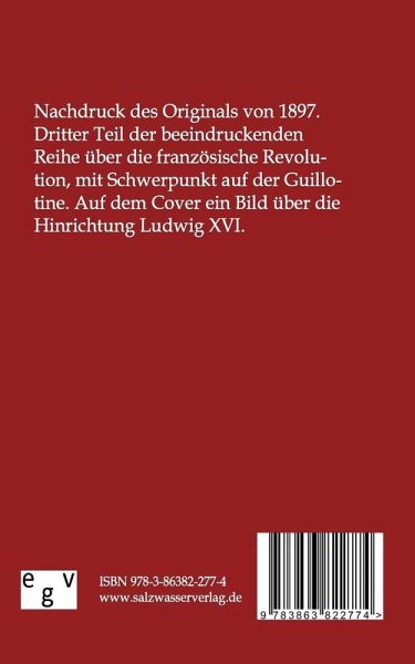 Nachdruck des Originals von 1897. Dritter Teil der beeindruckenden Reihe über die französische Revolution, mit Schwerpunkt auf der Guillotine. Auf dem Cover ein Bild über die Hinrichtung Ludwig XVI.