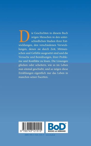 Die Geschichten in diesem Buch zeigen Menschen in den unterschiedlichen Stadien ihrer Entwicklungen, den verschiedenen Verwicklungen, denen sie durch Zeit, Mitmenschen und Gefühle ausgesetzt sind und die Versuche und Bemühungen, ihrer Probleme und Konflikte zu lösen. Die Lösungen glücken oder scheitern, wie es im Leben nun einmal geschieht, und so zeigen diese Erzählungen eigentlich nur das Leben in manchen seiner Facetten.