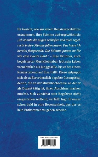Ihr Gesicht, wie aus einem Renaissancebildnis entnommen, ihre Stimme außergewöhnlich: "Ich konnte die Augen schließen und mich regelrecht in ihre Stimme fallen lassen. Das hatte ich bereits festgestellt: Die Stimme passte zu ihr wie eine zweite Haut." - Ingo Brunner, auch begeisterter Musikliebhaber, lebt sein Leben vornehmlich als Junggeselle, bis er bei einem Konzertabend auf Elsa trifft. Diese entpuppt sich als außerordentlich begabte Gesangsstudentin, die an der Musikhochschule, an der er als Dozent tätig ist, ihren Abschluss machen möchte. Sich zunächst sein Begehren nicht eingestehen…mehr