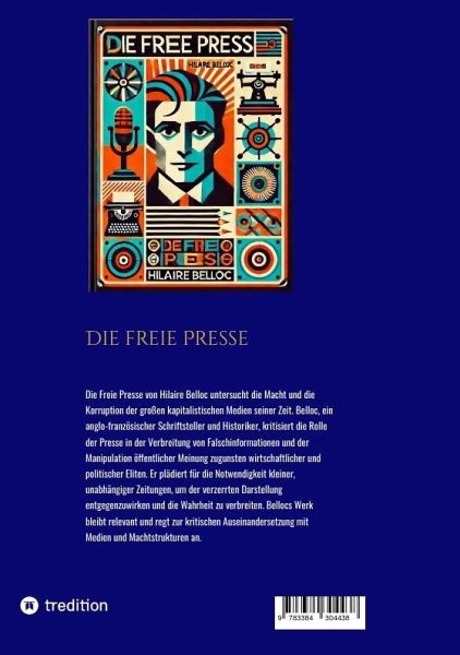 Die Freie Presse von Hilaire Belloc untersucht die Macht und die Korruption der großen kapitalistischen Medien seiner Zeit. Belloc, ein anglo-französischer Schriftsteller und Historiker, kritisiert die Rolle der Presse in der Verbreitung von Falschinformationen und der Manipulation öffentlicher Meinung zugunsten wirtschaftlicher und politischer Eliten. Er plädiert für die Notwendigkeit kleiner, unabhängiger Zeitungen, um der verzerrten Darstellung entgegenzuwirken und die Wahrheit zu verbreiten. Bellocs Werk bleibt relevant und regt zur kritischen Auseinandersetzung mit Medien und Machtstrukturen an.