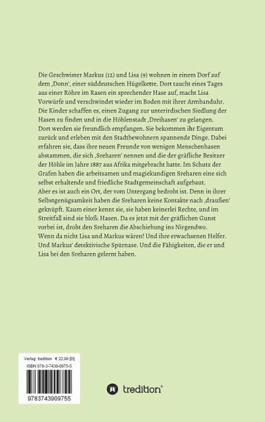 Dort werden sie freundlich empfangen. Sie bekommen ihr Eigentum zurück und erleben mit den Stadtbewohnern spannende Dinge. Dabei erfahren sie, dass ihre neuen Freunde von wenigen Menschenhasen abstammen, die sich 'Sreharen' nennen und die der gräfliche Besitzer der Höhle im Jahre 1887 aus Afrika mitgebracht hatte. Im Schutz der Grafen haben die arbeitsamen und magiekundigen Sreharen eine sich selbst erhaltende und friedliche Stadtgemeinschaft aufgebaut.