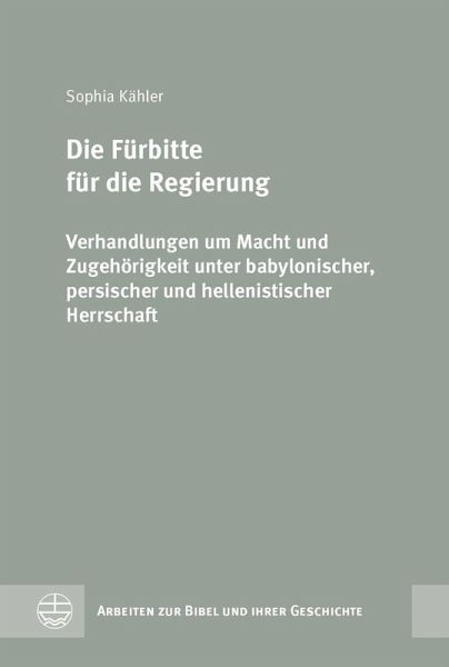 [Intercessory Prayer for the Government. Negotiations for Power and Affiliation under Babylonian, Persian and Hellenistic Rule]The book examines texts concerning intercessory prayer for governments, beginning with the end of the local monarchy in Judah. Therefore, prayers of intercession focus on the rulers of the Babylonian, Persian, and Hellenistic empires. Through these intercessions, Judean communities position themselves in relation to the ruling powers, negotiating their place within the imperial structures. At the same time, they appeal to a local deity whose significance is limited from an imperial perspective. The book explores how Judean communities reinforce or challenge existing power structures through intercessory prayer, how they shape their political self-understanding and how they convey various conceptions of rulership.