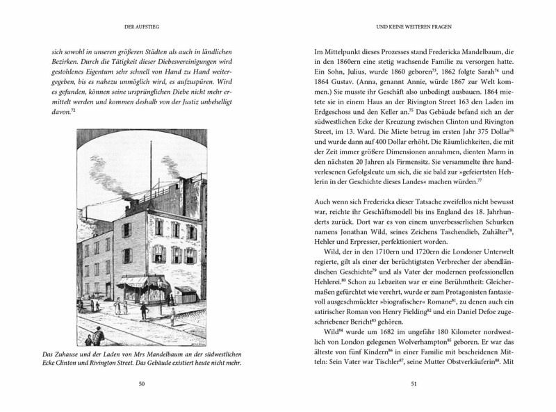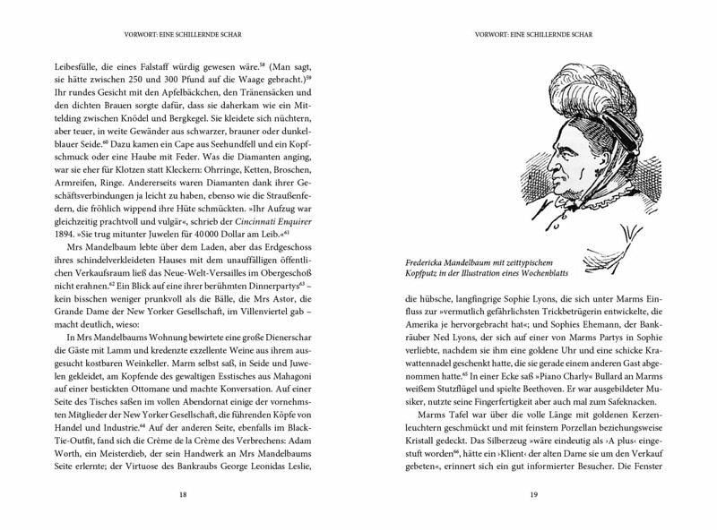 Im Jahr 1850 erreicht die 25-jährige Fredericka Mandelbaum aus Kassel wie Zigtausende andere bettelarm und nur mit dem Traum von einem besseren Leben im Gepäck das gelobte New York. In den Straßen von Lower Manhattan schlägt sie sich anfangs als Hausiererin durch - 20 Jahre später ist Fredericka »Marm« Mandelbaum geschätztes Mitglied der New Yorker High Society. Wie hat sie es in dieser Zeit zu einer der einflussreichsten Frauen der Stadt gebracht?Margalit Fox zeichnet ein lebendiges Porträt einer außergewöhnlichen Frau, die sich mit Diebstahl, Raub und Hehlerei ein Imperium aufgebaut hat, an dessen Spitze sie als Drahtzieherin stand. Als eine der ersten »Unternehmerinnen« Amerikas führte sie einen Kader der gewieftesten Bankräuber, Einbrecher und Ladendiebe ihrer Zeit, organisierte die Logistik und Lieferketten - und schuf so mit organisierter Kriminalität ein rentables Business. Doch ihre Machenschaften flogen auf und sie wurde festgenommen. Ihre Freilassung gegen Kaution nutzte sie, um nach Kanada zu fliehen.Dieses Buch erzählt die atemberaubende wahre Geschichte vom Aufstieg und Fall einer furchtlosen Frau im New York des Gilded Age. Margalit Fox nimmt uns mit in eine Stadt der Gangs, voller ruchloser Schurken, Gauner und Opportunisten auf der Grenze zwischen der Unterwelt und legalem Business, in der eine junge deutsche Auswandererin zu Reichtum und Berühmtheit fand.