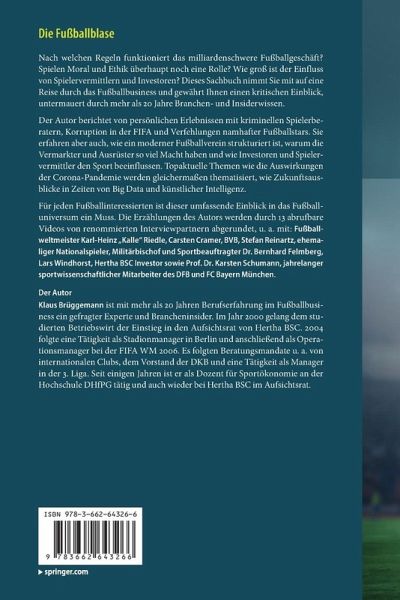 Für jeden Fußballinteressierten ist dieser umfassende Einblick in das Fußballuniversum ein Muss. DieErzählungen des Autors werden durch 13 abrufbare Videos von renommierten Interviewpartnern abgerundet, u. a. mit: Fußballweltmeister Karl-Heinz "Kalle" Riedle, Carsten Cramer, BVB, Stefan Reinartz, ehemaliger Nationalspieler, Militärbischof und Sportbeauftragter Dr. Bernhard Felmberg, Lars Windhorst, Hertha BSC Investor sowie Prof. Dr. Karsten Schumann, jahrelanger sportwissenschaftlicher Mitarbeiter des DFB und FC Bayern München.